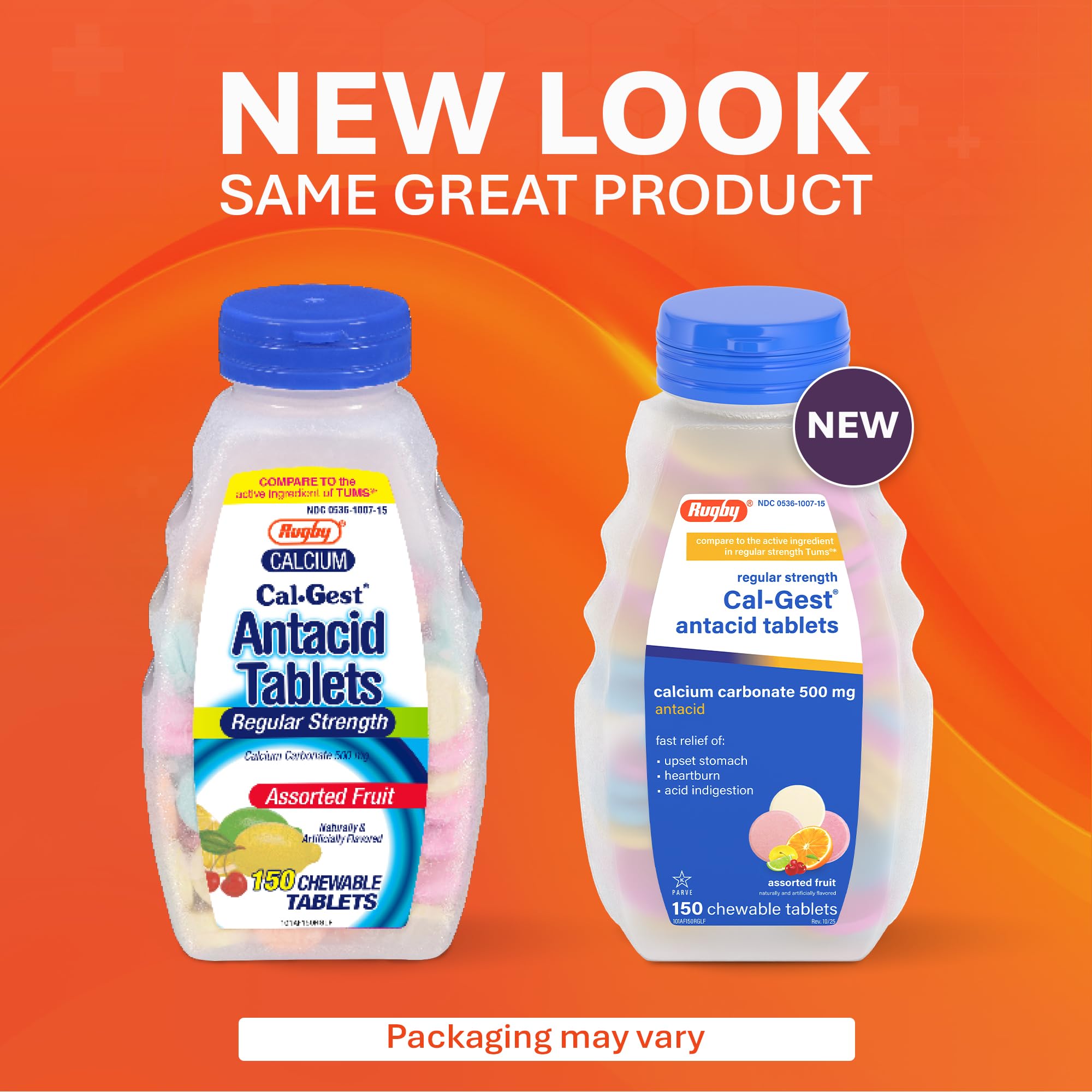 Rugby Calcium Cal-Gest Antacid Tablets - Regular Strength - Calcium Carbonate 500 mg - Assorted Fruit Flavor - 150 Chewable Count (1 Pack)