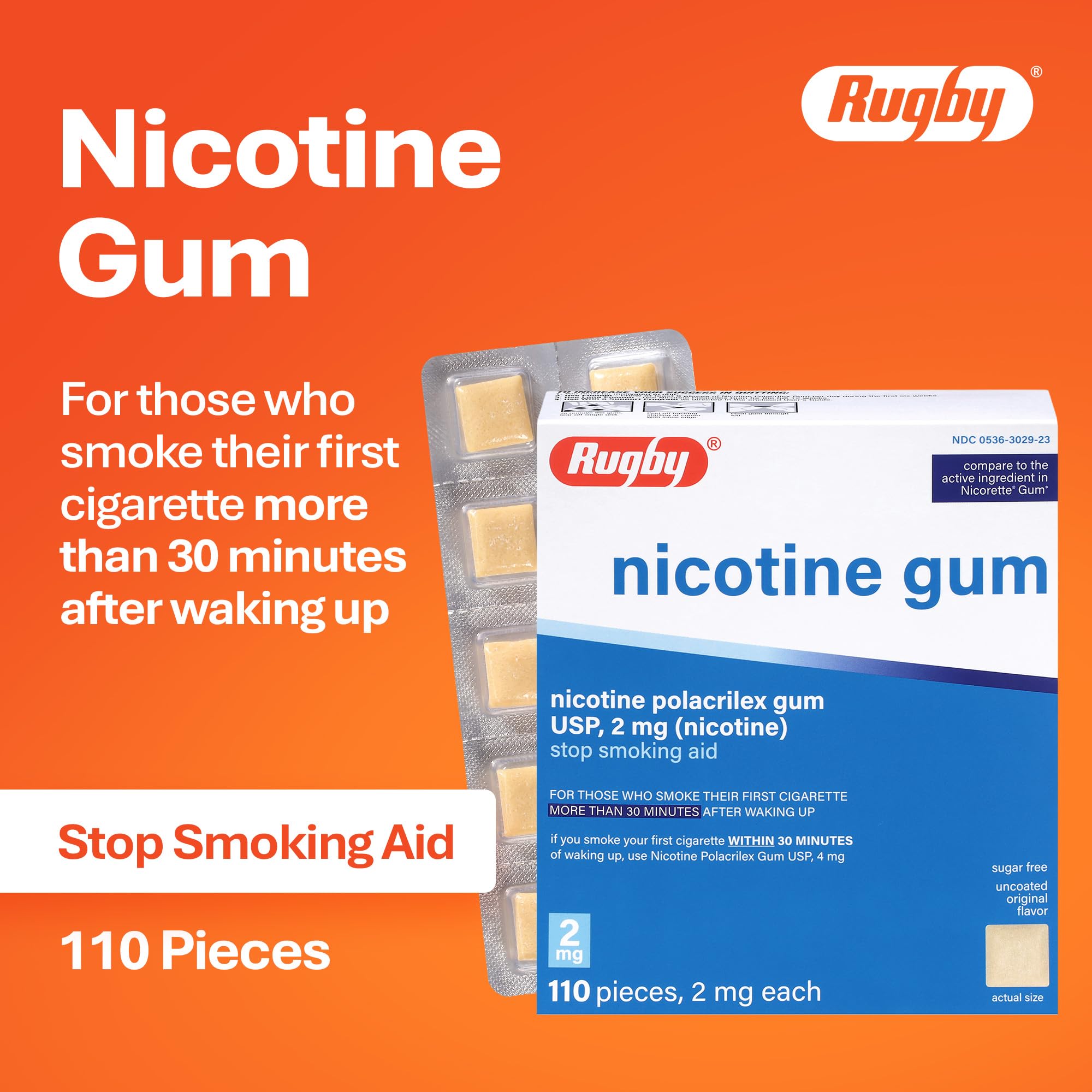 Rugby Polacrilex 2mg Nicotine Gum - Original Flavor, Quit Smoking and Vaping Aid, Sugar-Free, 110 Count (1-Pack)