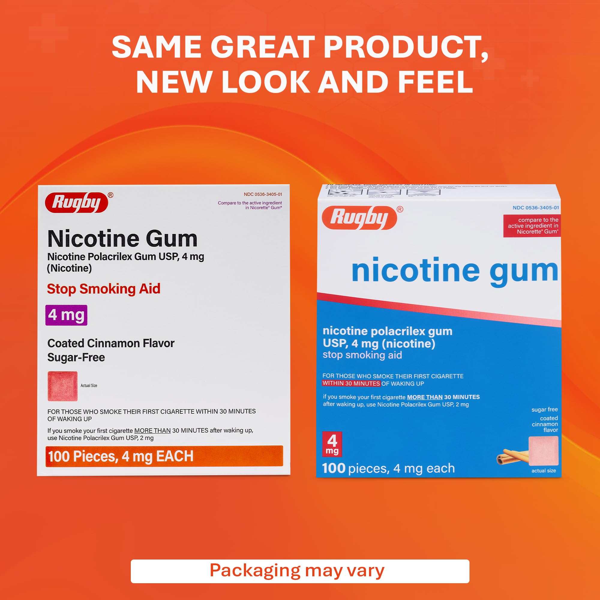 Rugby Polacrilex 4mg Nicotine Gum - Cinnamon Flavor, Quit Smoking and Vaping Aid, Sugar-Free,100 Count (1 Pack)