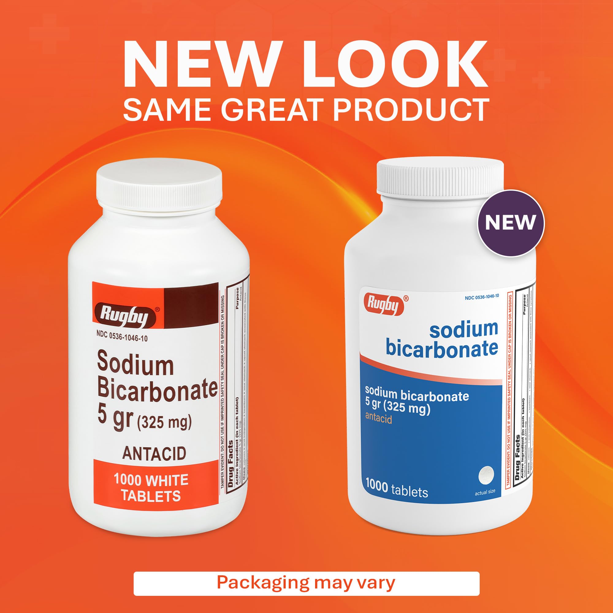 Rugby Sodium Bicarbonate 325 mg Antacid Tablets - Relief for Heartburn, Sour Stomach & Indigestion, 1000 Count (1-Pack)