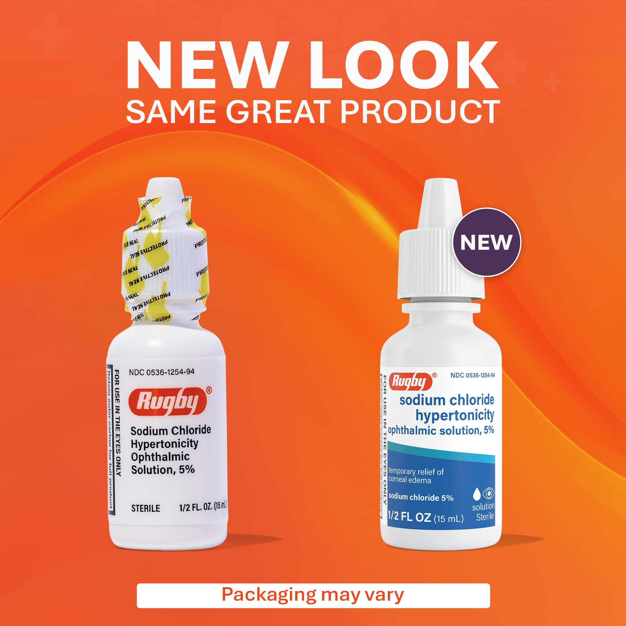 Rugby Sodium Chloride Hypertonicity Ophthalmic Eye Solution 5% - Sodium Chloride Eye Drops for Temporary Corneal Edema Symptom Support - Alcohol-Free - 0.5 Fl. Oz. (1-Pack)